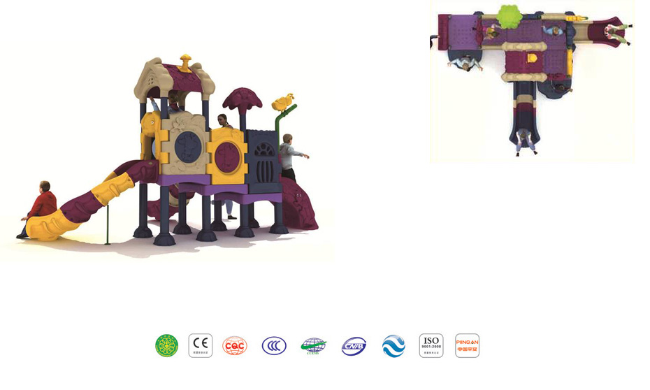 | 工藝 | 產(chǎn)品鐵件經(jīng)防銹除油后噴漆噴粉,采用高溫電磁烤漆工藝,防銹性能特強(qiáng),游戲平臺是全片式碳素鋼板沖壓成形,平臺表面鉆小孔具有防滑作用,游戲架滑梯及鉆桶類均由進(jìn)口食品級塑料經(jīng)先進(jìn)的真空滾塑成型技術(shù)鑄造制成,它們均含有防靜電及防紫外線成份,色彩恒久。 |