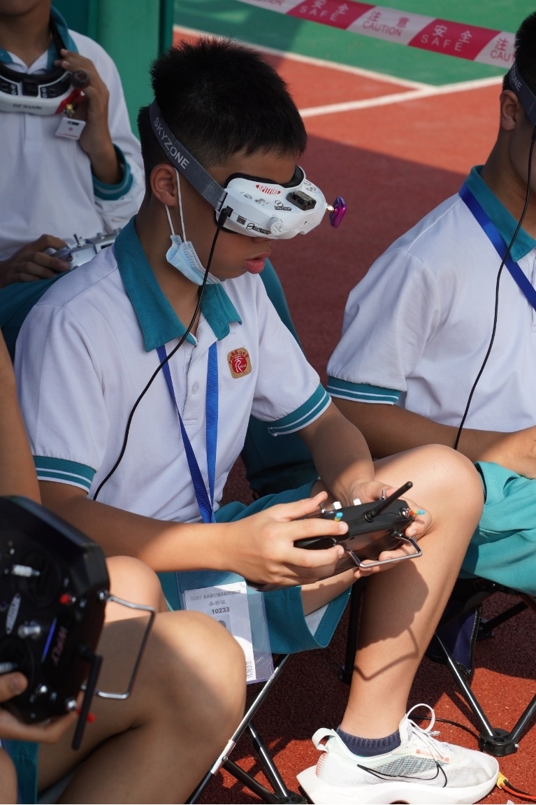 最緊張刺激的賽事當(dāng)屬“青蜂號(hào)“FPV競速賽,選手配帶目鏡,以第一視角操控“青蜂號(hào)“無人機(jī),無人機(jī)速度極快地穿越障礙,選手猶如駕駛宇宙飛船在時(shí)間隧道中飛行,最快速度通過所有障礙的選手勝出,勝負(fù)就在毫厘之間。經(jīng)過兩天的角逐,各獎(jiǎng)項(xiàng)名花有主,其中最緊張刺激的“青蜂號(hào)”FPV競速賽冠軍被來自中山市小欖花城中學(xué)的陳銘以33.7秒的成績獲得;遙控電動(dòng)繞標(biāo)競速賽冠軍被來自廣州市第二中學(xué)南沙天元的李皓哲以22.43秒成績獲得。