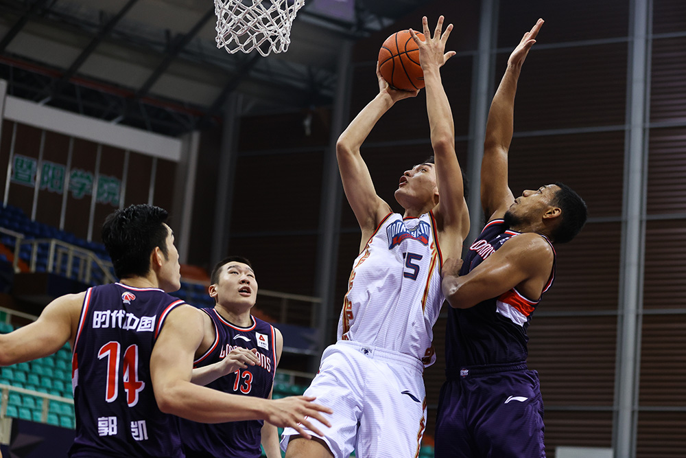 次節(jié)再戰(zhàn),廣州隊突然啞火,同曦隊抓住機會由李泓澎和王睿引領打出了一波9比0的進攻高潮。一個暫停過后,廣州隊開始聯(lián)防,他們連續(xù)完成了防守并借機打出快攻,郭士強的調整收到奇效,半場打完同曦僅以54比53領先廣州1分。