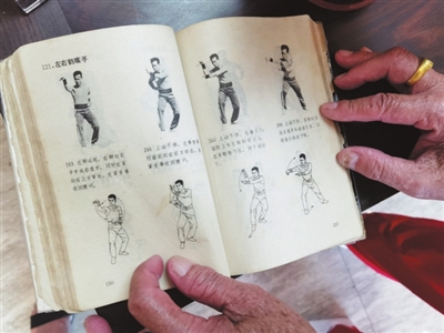 蕭永定精神矍鑠,聲如洪鐘,身形矯健,拳拳生風(fēng),但他其實(shí)已年近九旬。他是中山非遺傳承人中年紀(jì)最大的一位。蕭永定說(shuō),他八九歲的時(shí)候就在村中的“超武國(guó)術(shù)社”和“中方國(guó)術(shù)社”跟隨前輩學(xué)習(xí)劉家拳等南拳武術(shù)。