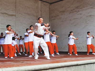 88歲的蕭永定帶領(lǐng)徒弟們操練劉家拳。