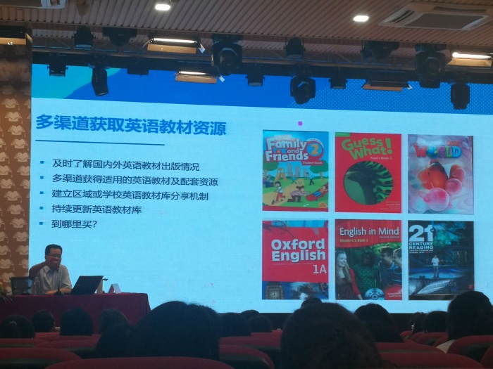 活動開始,首先觀摩了三鑫雙語學(xué)校鄭曉晴老師給我們帶來的五年級英語Unit 1 Seasons and Weather—Reading and Writing閱讀寫作課和小欖菊城小學(xué)周靜老師帶來的三年級英語 Unit 5 Let’s eat ( Part B)兩節(jié)精彩課例。兩位老師圍繞教學(xué)內(nèi)容進行深入的解讀和對相關(guān)內(nèi)容進行跨年級,跨版本教材和跨學(xué)科的教材整合,然后巧妙地滲透在她們的課堂設(shè)計中,使學(xué)生不單單是語言的習(xí)得與輸出,更是豐富了學(xué)生的學(xué)習(xí)方式,擴大學(xué)習(xí)范圍,完善知識結(jié)構(gòu),豐富世界知識。之后程曉堂教授進行精彩的點評,就小學(xué)英語跨教材資源的開發(fā)與利用進行講座。程教授用幽默風趣的語言從跨教材的緣起,跨教材資源的價值,跨教材資源的開發(fā)和跨教材資源的使用四方面向我們闡述了小學(xué)英語跨教材資源的開發(fā)與利用。程教授認為不同的教材采取的教與學(xué)的路徑可能有差異,為了使學(xué)生經(jīng)歷不同的學(xué)習(xí)路徑,可以兼用不同教材的教與學(xué)的路徑,豐富了學(xué)習(xí)方式,整合語言知識,完善知識結(jié)構(gòu),擴大學(xué)習(xí)范圍,豐富世界知識。他指出英語課程不只是讓學(xué)生學(xué)習(xí)英語知識,發(fā)展英語技能,還要學(xué)習(xí)各方面的知識(world knowledge)。最后辛健老師進行總結(jié),他指出小學(xué)英語教師應(yīng)具備教材大資源觀,整合教材之長,取長補短。同時指出老師要有提高自我專業(yè)發(fā)展的意識,注重個人學(xué)習(xí),向大家推薦一些英語教學(xué)理論書籍和期刊進行學(xué)習(xí)。