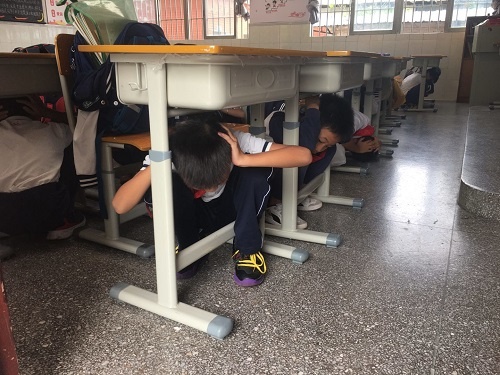 本次演練包括應(yīng)急避震與逃離疏散兩個環(huán)節(jié)。警報聲響起,同學(xué)們在老師的指導(dǎo)下,用手護(hù)住頭部,就近或蹲或躲在課桌下,以避開地震開始的強(qiáng)烈震動。當(dāng)震撼強(qiáng)度減弱,警報聲再次響起時,各班學(xué)生在班主任的組織下,有序從教室逃生,緊張而不慌亂。負(fù)責(zé)樓梯口疏導(dǎo)的老師堅守在自己的工作崗位上,直到最后一名學(xué)生通過,才迅速撤離。