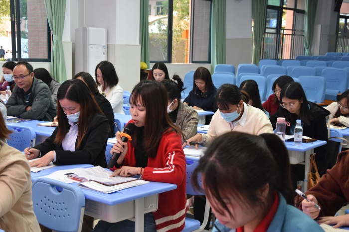 隨后,林妙麗老師和林月英老師為新老師們帶來了精彩的講座。林妙麗老師圍繞何為跨教材、跨教材教學(xué)資源的價值和跨教材教學(xué)資源的開發(fā)與運用三個方面展開分享,鼓勵老師們整合教材,取長補短,不斷豐富自己的教學(xué)環(huán)節(jié)。而林月英老師就新教師的專業(yè)成長之路展開分享。林老師肯定了年輕教師獨特的優(yōu)勢,鼓勵老師們多讀書,積極研究名師課堂,積極開展課題研究,潛心學(xué)習(xí),博采眾長,并運用到自己的教學(xué)中來。