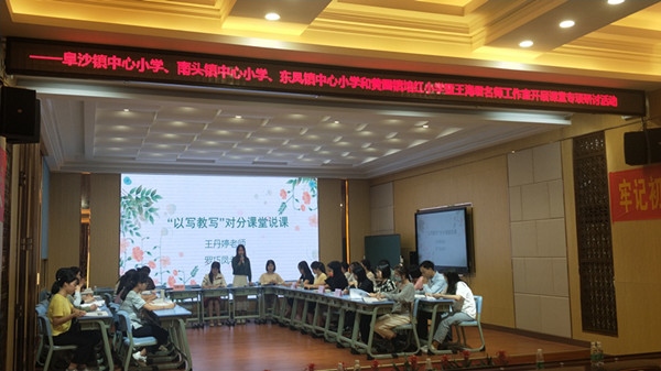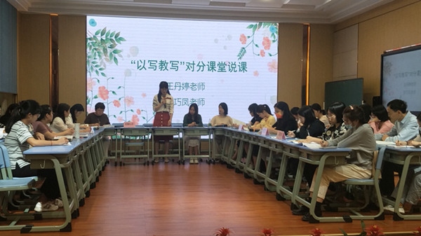 接著,參會(huì)老師共聚一堂,對(duì)小學(xué)習(xí)作教學(xué)進(jìn)行互動(dòng)交流?;?dòng)交流從上課老師進(jìn)行說課開始,兩位老師結(jié)合對(duì)分課堂教學(xué)的特點(diǎn),闡述了她們兩節(jié)課的教學(xué)思路,目標(biāo)達(dá)成。接著,各學(xué)校代表以及與會(huì)老師分別就這兩節(jié)課紛紛發(fā)表了自己的看法,大家暢所欲言,點(diǎn)亮著一個(gè)個(gè)耀眼的知識(shí)火花。
