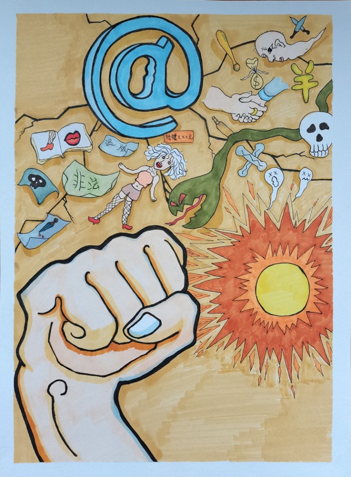 中共中央、國務院轉(zhuǎn)發(fā)的“八五”普法規(guī)劃和《關于加強社會主義法治文化建設的意見》要求,加強青少年法治教育,全面落實《青少年法治教育大綱》,教育引導青少年從小養(yǎng)成尊法守法習慣。東升高級中學為大力宣傳“掃黃打非”知識,用好的藝術作品教育人、鼓舞人及感染人的功能,助推“掃黃打非”工作深入開展,2021年10月,學校德育處聯(lián)合美術科組舉辦“掃黃打非”法制繪畫大賽。