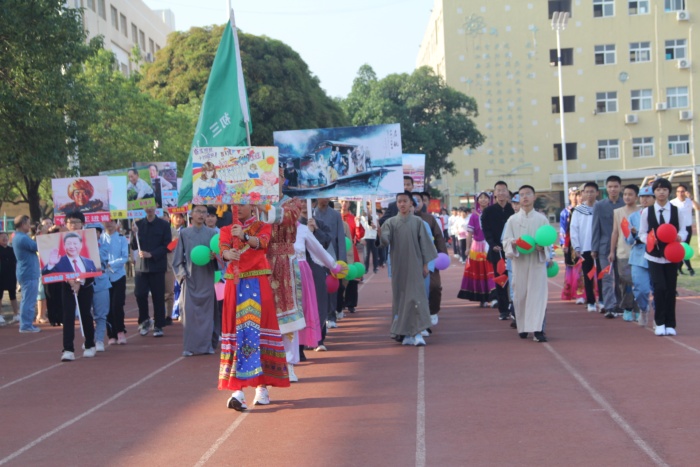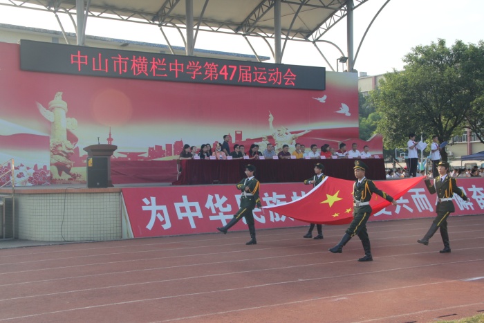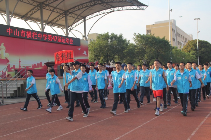 在秋日的艷陽之中,橫欄中學田徑場鑼鼓喧天、彩旗飄揚,學校國旗方陣、校旗方陣、裁判員方陣以及初一、初二、初三三個年級的班級方陣依次走過主席臺。各班隊伍精神飽滿、隊列整齊、口號響亮,整齊的班服、各具特色的民族服飾、鮮艷的五星紅旗、愛黨愛國的橫幅標語,充分體現(xiàn)了橫中學子的創(chuàng)意、激情和夢想。