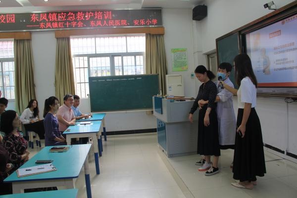 為進一步加強全市教育系統(tǒng)應(yīng)急救護工作,提高廣大師生自救自護技能,提高應(yīng)急救護知識普及率,11月5日上午,東鳳鎮(zhèn)紅十字會聯(lián)合東鳳人民醫(yī)院在安樂小學(xué)舉辦愛“救”在校園——東鳳鎮(zhèn)應(yīng)急救護培訓(xùn)。安樂小學(xué)全體教師及一百多名學(xué)生代表在階梯室參加應(yīng)急救護培訓(xùn)。