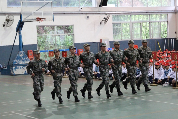下午,高一學(xué)子們以連為單位,開始了軍訓(xùn)。同學(xué)們認(rèn)真聽教官講解,絲毫不敢懈怠,第一天的軍訓(xùn)內(nèi)容包括軍姿、跑步行進(jìn)與立定等,接下來幾天,還有跑操隊(duì)形訓(xùn)練、整理內(nèi)務(wù)、軍歌、軍體拳等內(nèi)容。藍(lán)天白云天公作美!學(xué)校建設(shè)如火如荼,青年學(xué)子朝氣蓬勃!第一天的軍旅生活結(jié)束了,每一位同學(xué)也許步伐還未矯健,但是已經(jīng)懂得昂首挺胸。他們用所有的興奮和熱情對(duì)待軍訓(xùn)中的每一項(xiàng)活動(dòng)。