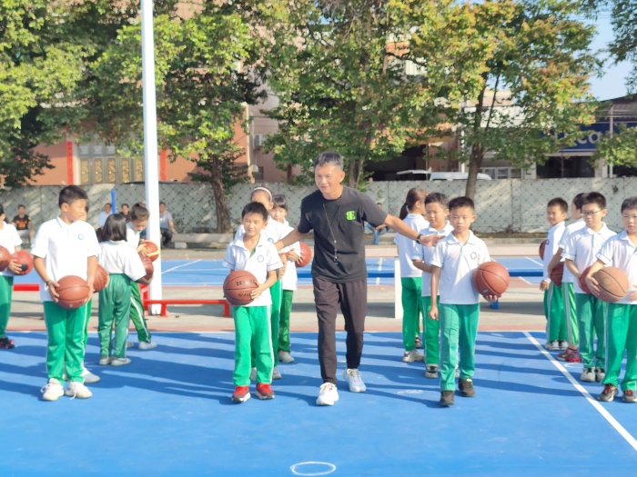 安堂小學(xué)黃昆明老師在籃球場(chǎng)上給龍港小學(xué)的學(xué)生們上了一節(jié)精彩的籃球訓(xùn)練課。黃老師將如何運(yùn)球,如何控球的方法給孩子們作了細(xì)致的講解,并通過(guò)老師的動(dòng)作示范。課上,孩子們學(xué)習(xí)興致極高,很快就學(xué)會(huì)了老師所教授的運(yùn)球技巧。
