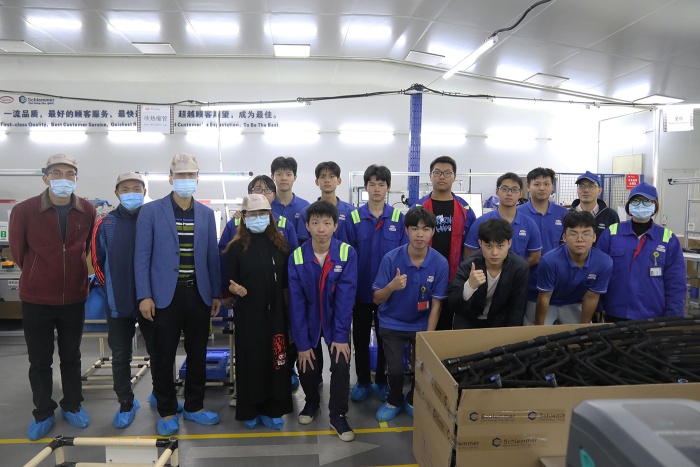 為真實(shí)了解中山中專2019級(jí)實(shí)習(xí)學(xué)生在企業(yè)的工作和生活狀況,同時(shí)為了拓寬貴州省六枝特區(qū)職校學(xué)生實(shí)習(xí)和就業(yè)路徑,搭建六枝特區(qū)職校的校企合作平臺(tái),助力中山中專結(jié)對(duì)幫扶六枝特區(qū)職校早結(jié)碩果,12月22日上午,中山中專校企合作處主任熊邦鳳帶領(lǐng)貴州省六枝特區(qū)職校張娜娜副校長(zhǎng)、中山中專汽車運(yùn)用與維修教研室主任伍家揚(yáng)、校企合作處駐企業(yè)實(shí)習(xí)帶隊(duì)教師程和勛、行政辦宣傳員張衛(wèi)濤一行5人深入中山詩(shī)蘭姆汽車零部件有限公司調(diào)研。熊邦鳳一行受到中山詩(shī)蘭姆汽車零部件有限公司總經(jīng)理張志超、副總經(jīng)理吳清峰、人事部經(jīng)理黃金鳳等人的熱情歡迎。
