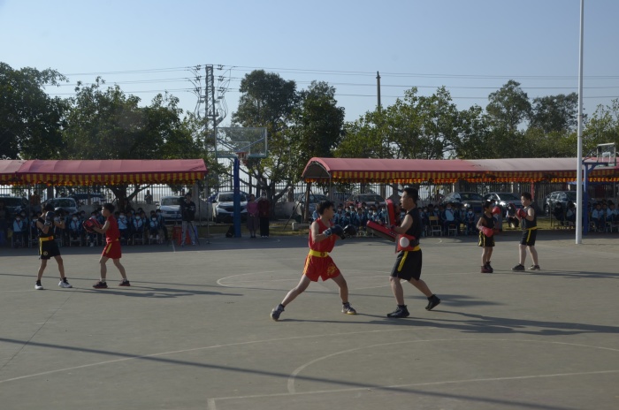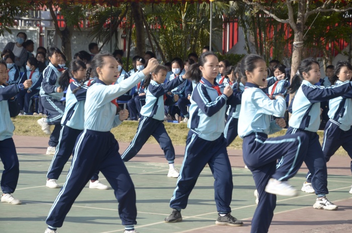 12月10日,風(fēng)和日麗,晴空萬里。同學(xué)們?cè)缭鐏淼綄W(xué)校,摩拳擦掌,興奮異常,因?yàn)槠诖丫玫墓Ψ驁F(tuán)體賽就要開始了。隨著響亮的國(guó)歌奏唱,陳啟武校長(zhǎng)宣布群聯(lián)小學(xué)2021年“中國(guó)功夫”團(tuán)體比賽正式開幕。學(xué)校散打隊(duì)、武術(shù)隊(duì)率先登場(chǎng)亮相,為師生們展現(xiàn)功夫的魅力;舞蹈隊(duì)也為活動(dòng)添彩,《獅熹樂》表演融入了舞蹈和舞獅,讓師生們目不暇接、驚嘆不已。隨著助興節(jié)目的結(jié)束,“中國(guó)功夫”團(tuán)體比賽正式拉開序幕。