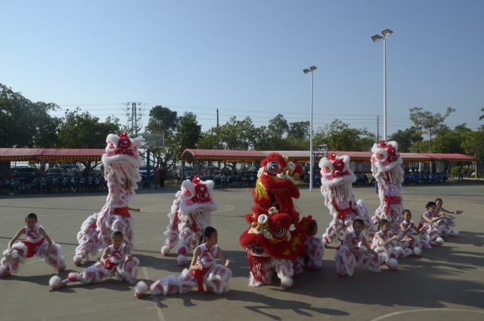 本次團(tuán)體比賽分先進(jìn)團(tuán)體比賽、班級(jí)精英比賽和年度小獅王比賽。其中,低年級(jí)組比賽形式為中華武術(shù),中年級(jí)組比賽形式為傳統(tǒng)舞獅,高年級(jí)組比賽形式為葉問詠春;另外還有年度“小獅王”比賽。別看孩子們年紀(jì)小,打起功夫來一板一眼,動(dòng)作干練,神氣十足。特別是低年級(jí)的小朋友們,初生牛犢不怕虎,眼神犀利,動(dòng)作有力;小小年紀(jì)頗有大師的風(fēng)范,引起了全場(chǎng)掌聲雷動(dòng)。年度“小獅王”比賽,“小獅子”們威風(fēng)凜凜、活靈活現(xiàn)??粗活^頭可愛而威武的“小獅王”,同學(xué)們歡呼聲一浪接一浪,掌聲與笑聲不斷。而互動(dòng)環(huán)節(jié),“小獅王”走進(jìn)各班“大本營(yíng)”,孩子們歡呼著去觸摸“小獅王”,高喊著“我也要當(dāng)小獅王”“我摸到了小獅王”“小獅王,來這里!”……一片歡聲笑語,把活動(dòng)推向高潮。