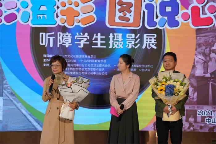 開幕式愛心融融、溫情涌動。市政協(xié)工會主席何星朗,市總工會二級調(diào)研員馮勇,市文化廣電旅游局四級調(diào)研員張文,廣東省廣播電視網(wǎng)絡(luò)股份有限公司中山分公司市場營銷部品牌傳播室負(fù)責(zé)人徐國超,市委宣傳部文化發(fā)展科科長王洪,市文化館館長方文,市特校黨總支書記、校長湯劍文,市文化館副館長王梓仲,市美術(shù)教研員沈文,市東區(qū)書法家協(xié)會會長吳步里,市攝影家協(xié)會副主席王國辰,歐派家居集團股份有限公司中山分公司總經(jīng)理譚錦恩,珠海“快門無聲”公益項目創(chuàng)始人朱習(xí),市文化館專職攝影師賀億強,以及市特校圖說影社的師生們均來到活動現(xiàn)場,真情相約本次心靈之旅。