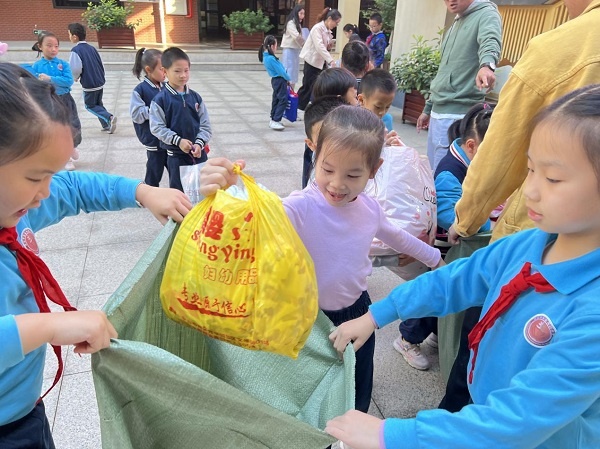活動當(dāng)天,同學(xué)們帶來了大袋小袋的衣物進(jìn)校,排著隊把物品分類排隊投放進(jìn)編織袋,一件衣物、一雙鞋子、一個書包、一本書……匯聚著家長和孩子們的愛心。捐獻(xiàn)過程中,同學(xué)們臉上都洋溢著美好的笑容,體會著“予人玫瑰,手有余香”的幸福。