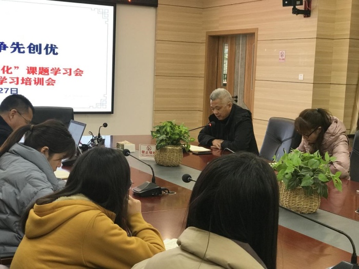緊接著鄧主任以“現(xiàn)代君子文化”為內(nèi)核的學校文化體系構建研究為教學藍本,重點為與會老師講解了該課題研究的目的及意義,鄧主任指出:目前關于學校文化建設的研究,多數(shù)在物質文化和制度文化上,但對于學校文化的精神文化和課程文化較系統(tǒng)、全方位進行研究的少,學校文化體系建設案例和成果較少,學校君子文化體系構建的更是甚少。所以本課題以“現(xiàn)代君子文化”為內(nèi)核的學校文化體系構建研究是對學校文化建設的實踐與豐富。構建好學校君子文化體系,將現(xiàn)代君子內(nèi)涵和要求在校園隨時隨地顯現(xiàn),在德、智、體、美、勞“五育”各個方面中滲透,促進學生主體性的發(fā)展,真正滿足學生與教師發(fā)展的需要,促進學校品牌特色形成,是本課題重要的實踐價值和意義。最后副校長董偉文鼓勵廣大班主任教師人人參與課題,注重問題導向,聚焦課堂,瞄準課堂教學質量,加快專業(yè)發(fā)展,帶出屬于自己特色的班集體。