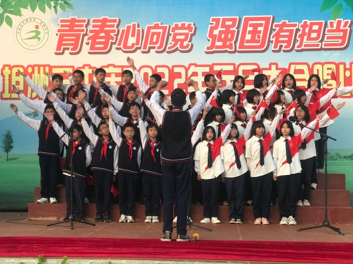 當日歷翻開新的一頁,小樹又要增加一個年輪,我們歡聚一堂,唱響青春。二2班以一首《團結(jié)就是力量》拉開大合唱帷幕,雄厚有力、整齊劃一的聲音傳遞著中華兒女勠力同心,共克時艱的決心與信心。愛國,是一種堅定的民族精神,是一種振興中華的責(zé)任感。二1班通過一首《我的中國心》向全體師生表達了一種強大的精神力量,不畏艱難險阻,創(chuàng)造屬于我們祖國的輝煌成就。未來屬于青年,希望寄予青年。一3班通過一首《少年中國說》述說著青年的夢想,青年的努力以及青年對未來的憧憬、期望,說唱結(jié)合,展現(xiàn)青年的活力與朝氣。黃河孕育偉大的中華文明,三2班以一首《保衛(wèi)黃河》唱出對黃河的禮贊,歌曲聲音洪亮,氣勢恢弘,鋼琴伴奏,增添了獨特的味道。每個周一,國歌想起,五星紅旗冉冉升起,三3班通過男女輪唱、齊唱等方式演奏《紅旗飄飄》,唱出“此生無悔入華夏”的驕傲與自豪。2021年,我們迎來建黨100周年,100年來,我們祖國發(fā)生翻天覆地的變化,三1班通過深情演繹一首《我愛你中國》表達了對祖國母親無限的感激之情。中華少年,風(fēng)華正茂,少年的夢就是中國夢,一2班通過一首《少年強》將大合唱推向高潮,慷慨激昂的曲調(diào),讓我們相信少年的未來就是中國的未來。沒有中國共產(chǎn)黨,就沒有現(xiàn)代化的中國,一1班廖文輝、李家欣以一段精彩的演講引入一首《沒有共產(chǎn)黨就沒有新中國》,科技創(chuàng)造未來,伴隨著一面黨旗從空中飛過,一1班放聲歌唱,深情傾訴對中國共產(chǎn)黨的驕傲與自豪。初心不忘青春志、匠心共筑中國夢,教師代表卞堪佐、吳境聰、黎小玲、劉秀平、肖偉芳領(lǐng)唱,全校師生共同演繹《不忘初心》,嘹亮的歌聲將此次大合唱落下帷幕。