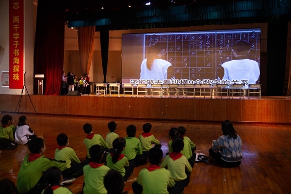 緊接著,校魔方團隊的表演者們給大家?guī)砹司实哪Х綇驮硌?,通過現(xiàn)場同學隨機打亂,在短時間內把魔方成功復原,精彩的表演贏得了臺下熱烈的掌聲。隨著現(xiàn)場的氣氛推向高潮,江彬老師介紹了數(shù)學節(jié)的各種游戲,闡述了數(shù)學節(jié)活動的開展對提高孩子數(shù)學學習積極性的重要意義,強調用數(shù)學思維和數(shù)學的眼光來解決數(shù)學游戲。