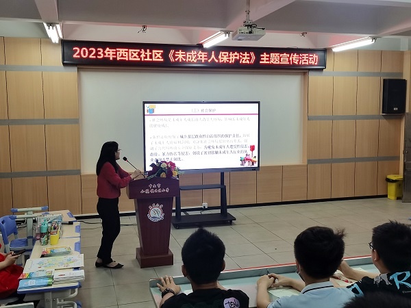 為進(jìn)一步加強(qiáng)未成年人保護(hù)工作,提高學(xué)生自我安全保護(hù)意識和能力,促進(jìn)未成年人健康成長,3月29日下午,小欖鎮(zhèn)西區(qū)社區(qū)走進(jìn)小欖鎮(zhèn)西區(qū)小學(xué)為六年級學(xué)生開展《未成年人保護(hù)法》主題宣講活動,全面貫徹落實未成年人保護(hù)的相關(guān)法律法規(guī)。