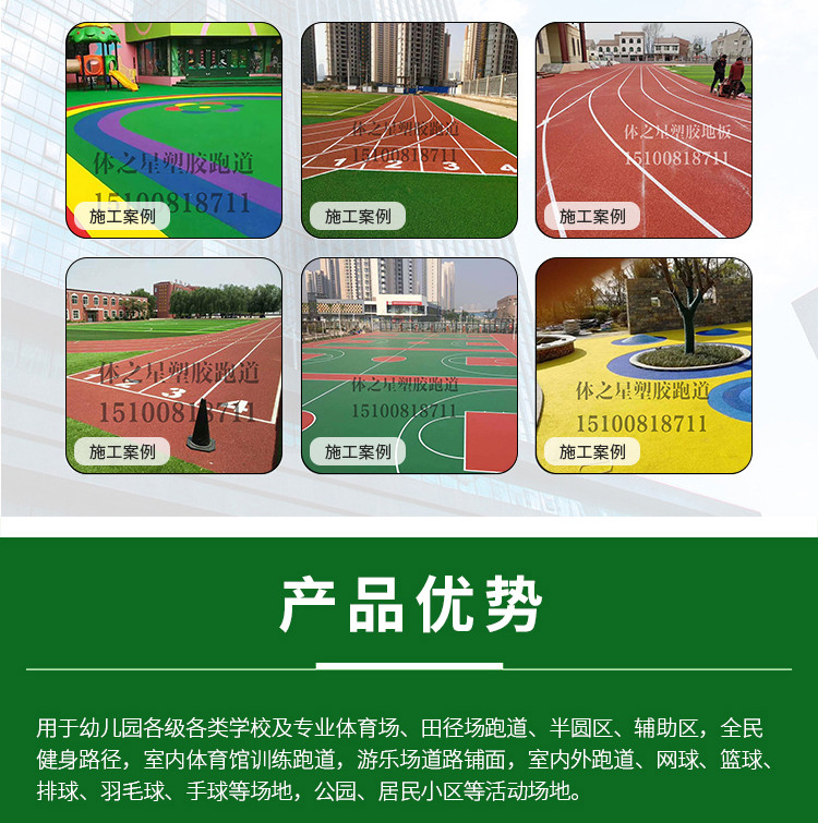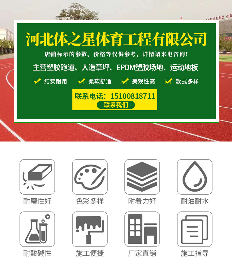 主營(yíng)透氣型跑道材料、混合型跑道材料、三元乙丙橡膠顆粒材料、硅PU球場(chǎng)材料、PU塑膠材料、預(yù)制型卷材、人造草坪TPE顆粒等