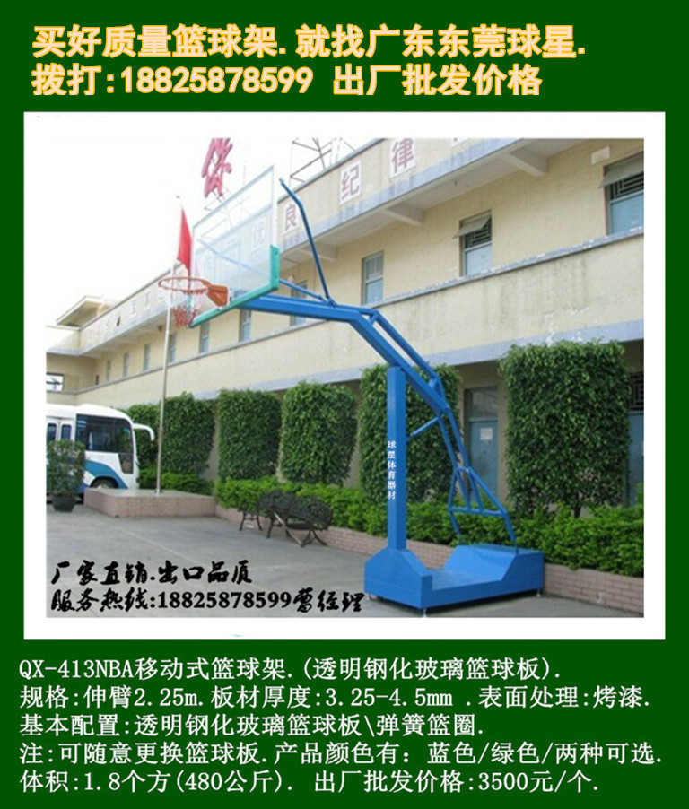籃球架系列產(chǎn)品顏色為:綠色、藍(lán)色、可選.可根據(jù)用戶需求改變顏色,產(chǎn)品在沒有特別說明的前提下默認(rèn)為根據(jù)庫存隨機(jī)從綠、藍(lán)兩種顏色中隨機(jī)抽取發(fā)貨。