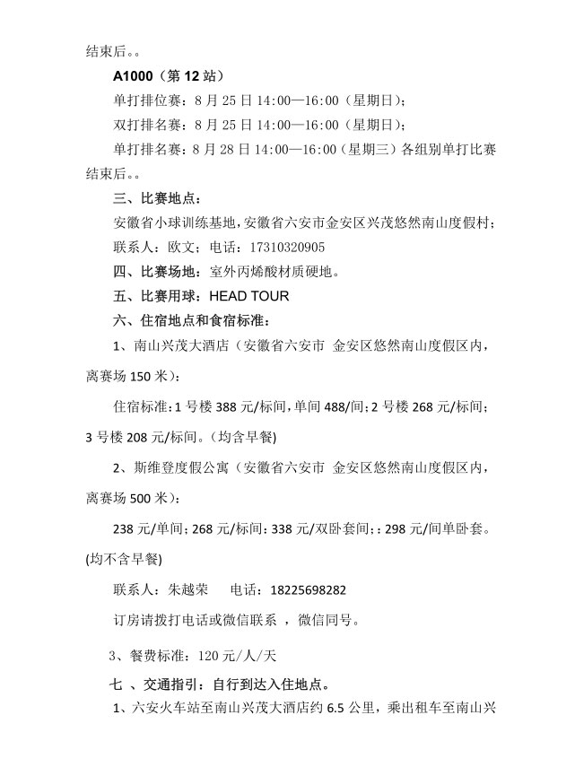 2019年全國(guó)青少年網(wǎng)球積分排名系列賽(六安站)補(bǔ)充通知