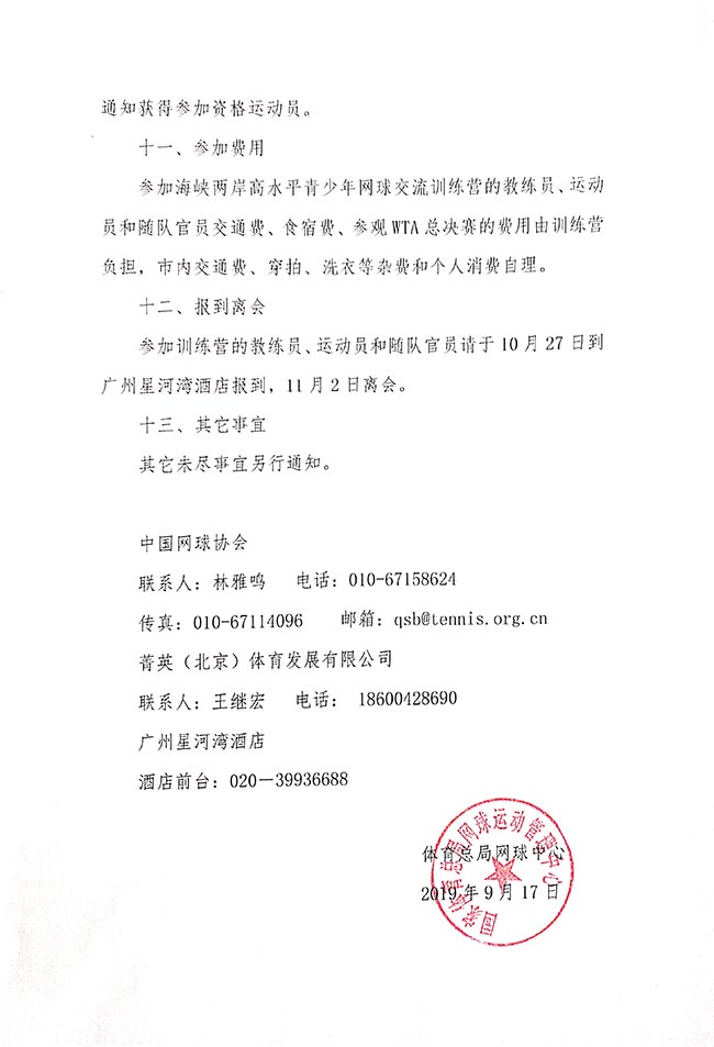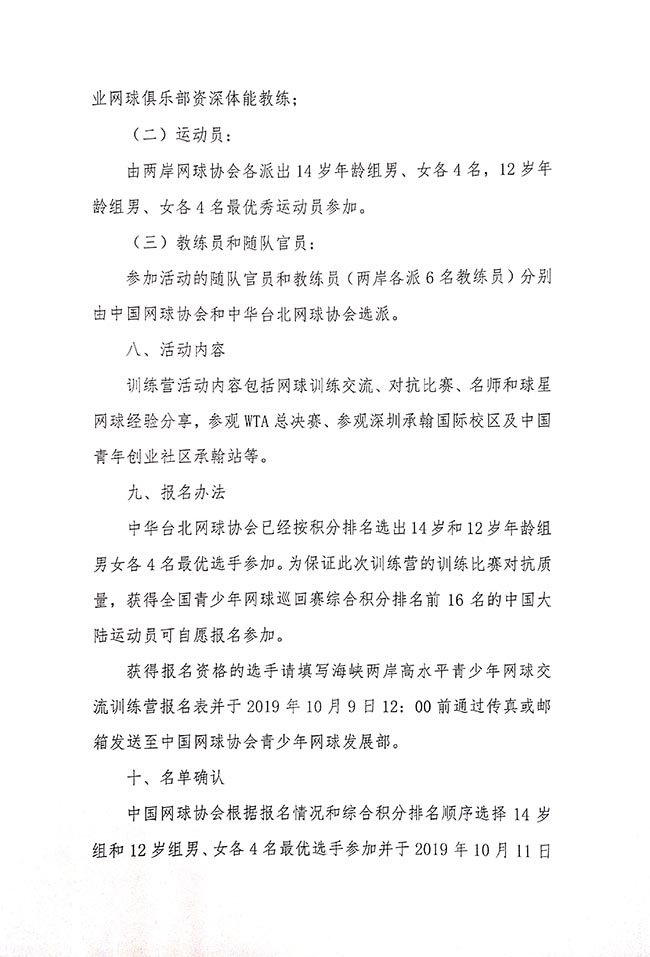 體育總局網(wǎng)球中心關(guān)于舉辦海峽兩岸高水平青少年網(wǎng)球交流訓(xùn)練營的通知