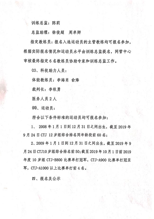1.符合參加2020年國家少年預備隊選拔訓練營的運動員名單