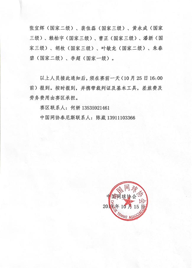 關(guān)于選派2019年中國業(yè)余網(wǎng)球公開賽深圳皇冠賽技術(shù)官員的通知