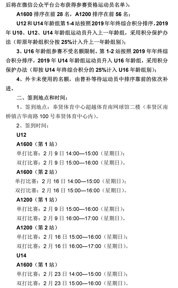 2020年全國青少年網(wǎng)球積分排名系列賽(奉賢站)補(bǔ)充通知