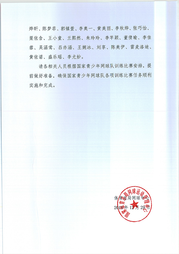 關(guān)于公布2020年國家青少年網(wǎng)球隊相關(guān)人員組成名單的通知