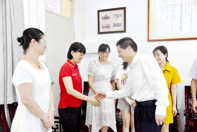 彭聰恩區(qū)長認(rèn)真聽取了吳劍平校長所作的匯報(bào),不時(shí)點(diǎn)頭贊許。彭區(qū)長說,順德華僑中學(xué)2019年高考取得優(yōu)異成績,為順德教育高質(zhì)量發(fā)展作出了重要貢獻(xiàn),僑中教師,尤其是高三教師的辛勤付出,值得肯定;希望老師們戒驕戒躁,乘勝前進(jìn),既要進(jìn)一步提升質(zhì)量,也要充分重視挑戰(zhàn),以順德教師優(yōu)良的師德師風(fēng)和優(yōu)秀的專業(yè)素養(yǎng),再創(chuàng)順德教育的輝煌;彭區(qū)長表示,區(qū)委區(qū)政府高度重視教育發(fā)展,正千方百計(jì)為學(xué)校提升辦學(xué)質(zhì)量提供支持,千方百計(jì)提升教師的職業(yè)價(jià)值和幸福感;他還囑咐老師們愛惜身體,勞逸結(jié)合,正確處理事業(yè)、家庭、個人三者的關(guān)系,做到和諧共贏。