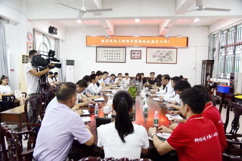 7月10日上午,順德區(qū)委副書記、區(qū)長彭聰恩同志偕同區(qū)政府相關(guān)部門負(fù)責(zé)同志蒞臨華僑中學(xué)調(diào)研指導(dǎo)工作。區(qū)委區(qū)政府辦公室副主任曾帆、鐘德慰,區(qū)教育局局長閔樂萍,區(qū)財(cái)政局局長黎勁康,區(qū)國有資產(chǎn)監(jiān)督管理局局長寧磊等同志陪同調(diào)研。