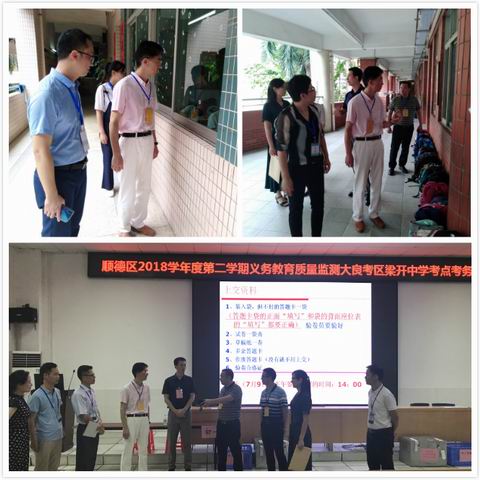 為確保順德區(qū)2018―2019學(xué)年第二學(xué)期義務(wù)教育階段期末教學(xué)質(zhì)量監(jiān)測順利開展,有效落實各項考務(wù)工作要求,2019年7月8日至9日,以區(qū)教育局張毅副局長為領(lǐng)隊的巡考組(巡考組成員由區(qū)教育局基礎(chǔ)教育科、教育督導(dǎo)室、招生考試和審批服務(wù)科以及區(qū)教育發(fā)展中心的人員組成),聯(lián)同鎮(zhèn)(街道)間互派巡考代表,分成10個巡查小組,分赴區(qū)內(nèi)10個鎮(zhèn)(街道)的中小學(xué)和區(qū)屬學(xué)校,對四至八年級期末教學(xué)質(zhì)量監(jiān)測考務(wù)工作情況進行實地巡視檢查。