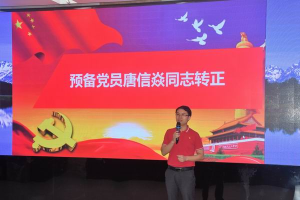 黨員大會(huì)分三項(xiàng)議程。第一項(xiàng)議程是預(yù)備黨員唐信焱同志的轉(zhuǎn)正討論及表決。唐信焱同志作了近一年來的思想、學(xué)習(xí)、生活、工作匯報(bào),隆重地向黨總支提出轉(zhuǎn)正申請(qǐng)。其入黨介紹人及其他黨員同志分別對(duì)其表現(xiàn)作了表態(tài)發(fā)言。全體黨員舉手表決,全票通過,同意唐信焱同志按時(shí)轉(zhuǎn)正,正式成為中國(guó)共產(chǎn)黨黨員。唐信焱同志表示以后要一如既往,不忘初心,牢記使命!