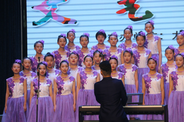 我校合唱隊姑娘們穿著淡雅的裙裝,自信優(yōu)雅地站在表演臺上,指導老師唐小林風度翩翩地彈奏鋼琴,“啊,卓瑪……你像一只自由的小鳥歌唱在那草原上,你像春天飛舞的彩蝶,閃爍在那花叢中……”豐華中學合唱隊用飄逸靈動的聲音演繹了一首《卓瑪》,歌唱聲如同歌詞:像一杯甘甜的美酒,醉了太陽,醉了月亮!陶醉了在場所有人!緊接著,場景從遼闊飄逸的草原轉移到迷蒙月光下的果園里,合唱隊員們一首《葡萄園夜曲》,唱出了寧靜的夜空下異鄉(xiāng)人對家鄉(xiāng)葡萄園的無限思念。優(yōu)美的旋律、獨特的唱風、天籟的聲音以及師生精準的配合,令所有評委和觀眾如癡如醉,嘖嘖稱贊。最終獲得初中組唯一一個一等獎!唐小林和全波兩位老師獲得“優(yōu)秀指導老師獎”稱號!真是可喜可賀!