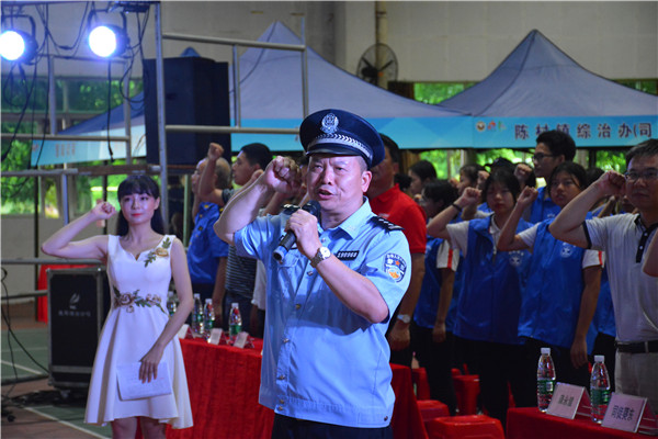 陳村鎮(zhèn)黨委委員、陳村派出所所長劉劍飛,陳村鎮(zhèn)綜治辦常務(wù)副主任龔永健,陳村鎮(zhèn)禁毒協(xié)會會長單位、廣東永通起重機(jī)械股份有限公司董事長葉宏洪,陳村職校副校長司徒葵東,陳村鎮(zhèn)各職能部門代表以及陳村職校智能制造學(xué)部全體學(xué)生等1000余人參加了本次活動。