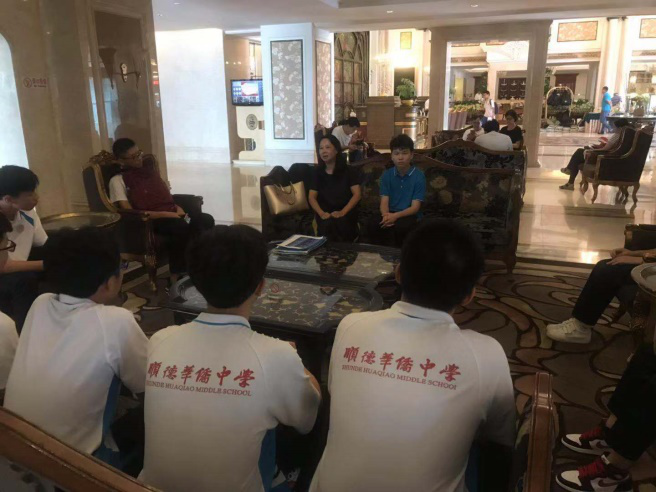 張映紅副校長趕到隊員就住酒店,給隊員加油打氣,提出:“務(wù)實、扎實、真實的交流,虛心、真心、熱心的展現(xiàn)”的指導(dǎo)思想,希望同學(xué)們能夠盡力展現(xiàn)新時代僑中人的風(fēng)采。