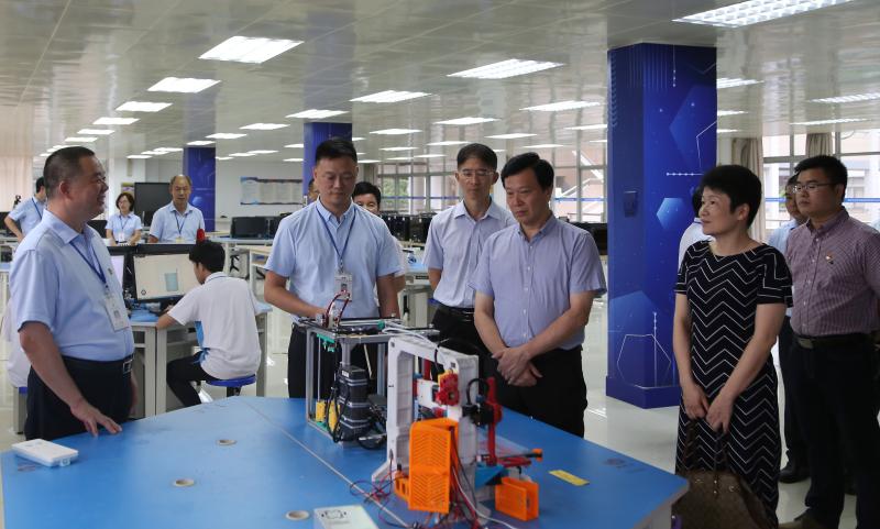在勒流街道黨工委委員、教育局局長(zhǎng)林程、學(xué)校校級(jí)行政班子成員陪同下,一行人首先參觀(guān)了學(xué)校3D打印與雙創(chuàng)公共實(shí)訓(xùn)中心。