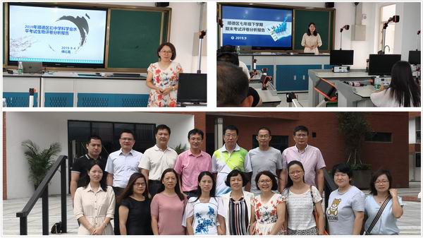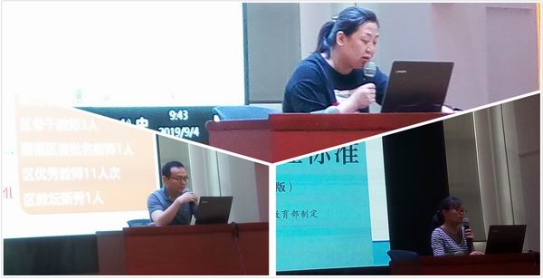 傅紅霞、崔利敏老師做報告及初中教研組長合影