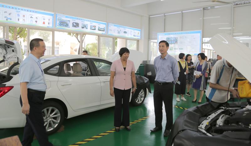 在李保俊校長等行政人員的陪同下,一行人先后參觀了勒流職校汽修實(shí)訓(xùn)中心、領(lǐng)悅財(cái)稅實(shí)訓(xùn)中心、智能制造中心、3D打印與公共實(shí)訓(xùn)中心和電商創(chuàng)業(yè)中心。勒流職校以地方產(chǎn)業(yè)為支撐,將企業(yè)引進(jìn)學(xué)校,讓學(xué)生在學(xué)校“工作”的“實(shí)打?qū)崱钡男F蠛献饔四J降玫搅思钨e們的高度贊揚(yáng)。
