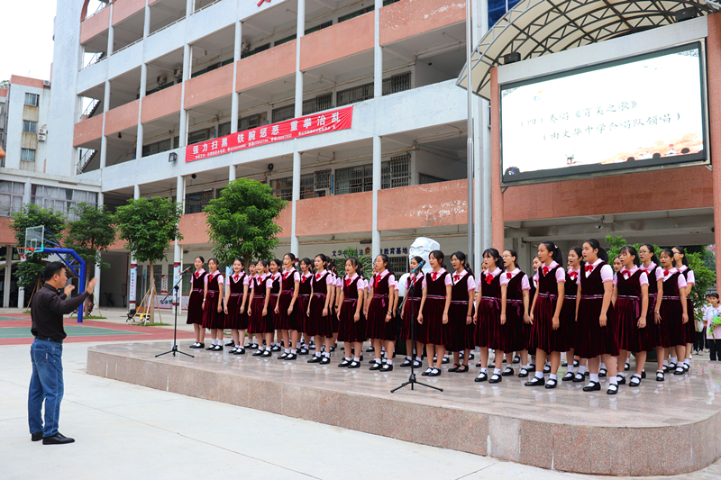 之后,由文華中學合唱隊領(lǐng)唱《育美之歌》,操場上空響起了優(yōu)美的文化旋律。在全場學生齊呼:“爭做身體健美,心靈純美,行為修美,求學篤美,與人和美,為事慧美的‘六美學子’!”的瑯瑯口號聲中,本次集團日活動圓滿結(jié)束。