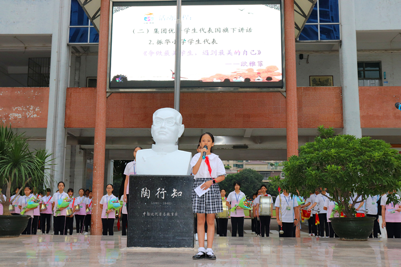 莊嚴的升旗儀式完畢后,育美教育集團容山小學的譚懿同學、育美教育集團振華小學的歐雅菲同學分別作了題為《用勤奮成就更好的自己》和《爭做最美學生,遇到最美的自己》的演講。育美教育集團文華中學夏仁斌主任作《為美好人生奠基》主題講話。