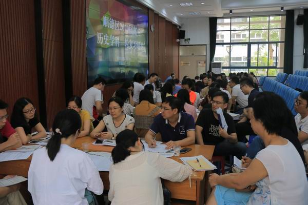 為進一步推動我區(qū)高中歷史課程改革,落實學科核心素養(yǎng),提高課堂教學效率,探索新課標背景下高三歷史一輪復習備考的策略與方法,凸顯“歷史敘事”在復習中的運用,2019年10月8日,順德區(qū)教育發(fā)展中心于順德一中舉辦了順德區(qū)2020屆高三歷史一輪復習研討活動,全區(qū)高三歷史教師、高一高二歷史備課組長及高一高二歷史骨干教師等100余人參加?;顒佑蓞^(qū)教育發(fā)展中心教研室余逸主任主持。