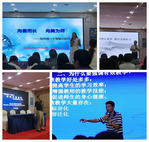 武漢市東湖新技術(shù)開發(fā)區(qū)教育發(fā)展研究院夏循藻院長主講的題目是《有效教學(xué)的策略與方法》。夏院長博學(xué)多才,幽默風(fēng)趣,用豐富的課例為教師們呈現(xiàn)了他對有效教學(xué)的思考和解讀,使學(xué)員們明確了要如何實施有效的教學(xué),如何評價一堂課是否有效等。
