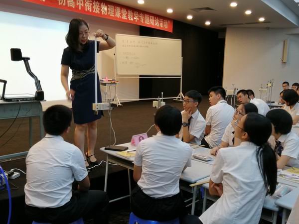 活動以兩節(jié)非常精彩的初高銜接示范課拉開帷幕。廣東順德德勝學(xué)校楊元老師執(zhí)教的初中物理課――《串、并聯(lián)電路》,課堂設(shè)計(jì)以問題驅(qū)動,層層推進(jìn),利用演示實(shí)驗(yàn)和學(xué)生實(shí)驗(yàn)幫助學(xué)生認(rèn)識串、并聯(lián)電路之間的聯(lián)系與區(qū)別,聯(lián)系生活實(shí)際,激發(fā)學(xué)生求知欲。