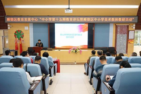 2019年12月27日下午,容山中學(xué)集賢樓報(bào)告廳濟(jì)濟(jì)一堂,來自全區(qū)中小學(xué)220多名美術(shù)教師以及區(qū)教育發(fā)展中心教師發(fā)展研究室主任唐信焱、副主任吳海堅(jiān),區(qū)美術(shù)教研員王育群老師齊聚這里,參加了一場別開生面的美術(shù)教研活動?;顒佑身樀聟^(qū)教育發(fā)展中心、順德區(qū)名師工作室建設(shè)項(xiàng)目管理辦公室主辦,順德區(qū)容山中學(xué)、順德區(qū)劉磊名師工作室承辦,容山中學(xué)侯柏羽老師擔(dān)任活動主持。