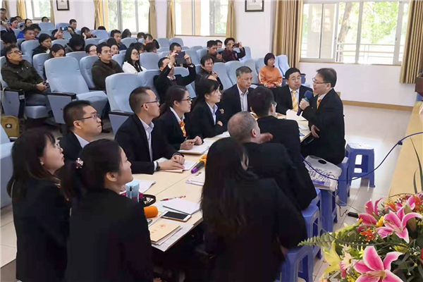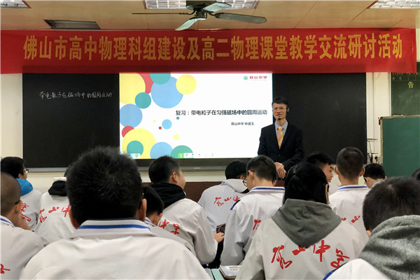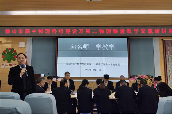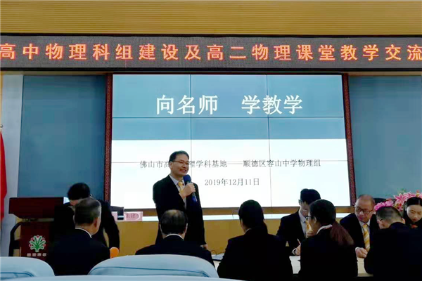 為更好地落實(shí)“立德樹人”的根本任務(wù),主動適應(yīng)我國教育教學(xué)及高考改革的新趨勢,實(shí)現(xiàn)新課標(biāo)教學(xué)目標(biāo)在課堂教學(xué)中的落地,切實(shí)提升學(xué)生的核心素養(yǎng),2019年12月11日,佛山市高中物理科組建設(shè)及高二物理課堂教學(xué)交流研討活動于我校隆重舉行。佛山市教育局教研室朱建平主任、云浮市教育局教研室黃國穎主任、廣東教育出版社朱夢華編輯以及佛山市、云浮市各校物理學(xué)科教師200多人參加了本次活動。