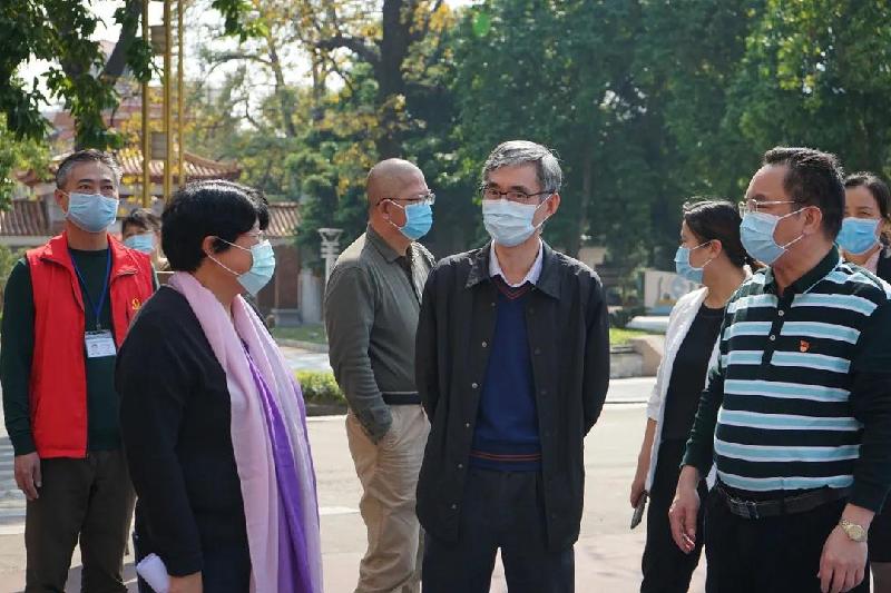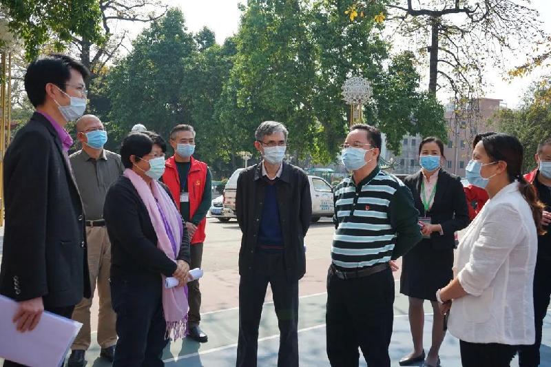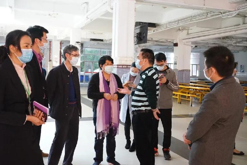 順德區(qū)副區(qū)長、容桂街道黨工委書記劉國興(右3)等領導到容山中學檢查疫情防控工作