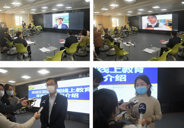 媒體記者在線和現(xiàn)場(chǎng)采訪校長(zhǎng)、老師、學(xué)生